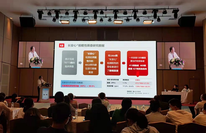 廣東省人民醫(yī)院協(xié)和醫(yī)療中心主任、廣東省醫(yī)院協(xié)會(huì)醫(yī)院健康管理專(zhuān)委會(huì)主任委員陳煉以《中國(guó)癌癥早篩的機(jī)遇與挑戰(zhàn)》為題作主題演講時(shí),重點(diǎn)介紹了糞便SDC2基因甲基化PCR檢測(cè)對(duì)結(jié)直腸癌早期診斷的效果。