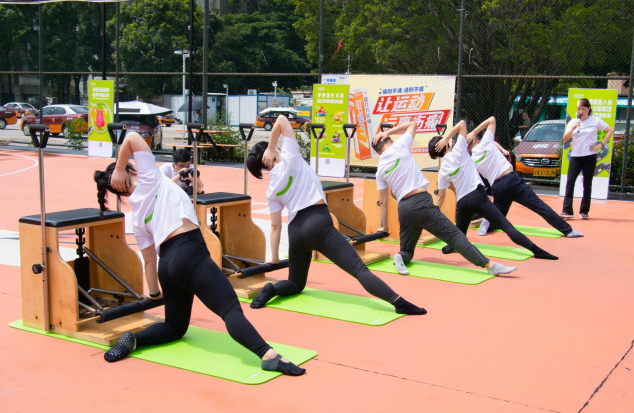 在現(xiàn)場,馬老師詳細演示、講解了“腸道普拉提”動作,并帶領30多位普拉提愛好者一起展示。