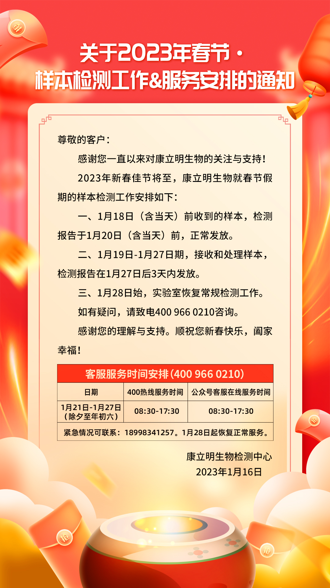 關(guān)于2023年春節(jié)·樣本檢測(cè)工作&服務(wù)安排的通知