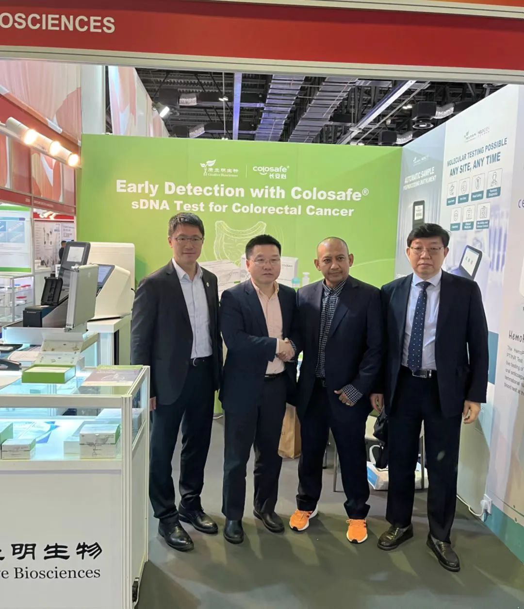展會(huì)上,康立明生物創(chuàng)始人、腸癌早篩技術(shù)發(fā)明人鄒鴻志博士親臨現(xiàn)場(chǎng),并帶領(lǐng)專業(yè)團(tuán)隊(duì)為多方客戶熱情專業(yè)的講解,共同交流,洽談合作。并介紹了長(zhǎng)安心®目前在國(guó)內(nèi)568051例應(yīng)用檢測(cè)(截至2022年12月31日)的成功模式與經(jīng)驗(yàn)。