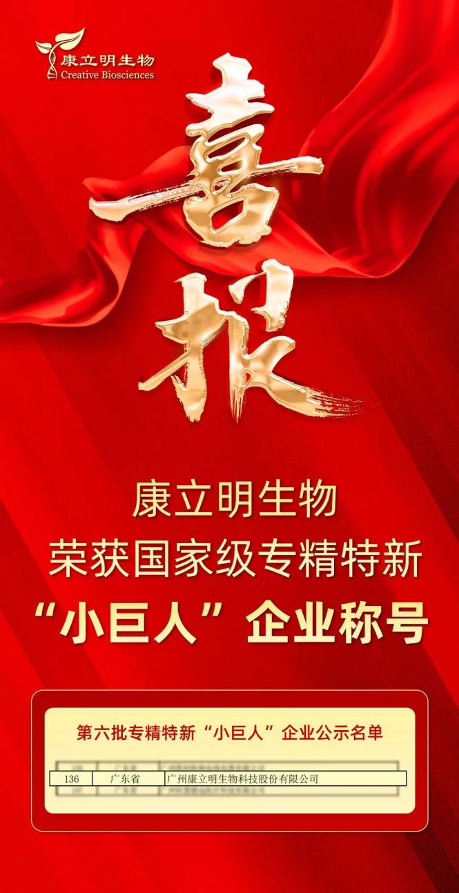 喜報(bào)!康立明生物榮獲國家級(jí)專精特新“小巨人”企業(yè)稱號(hào)
